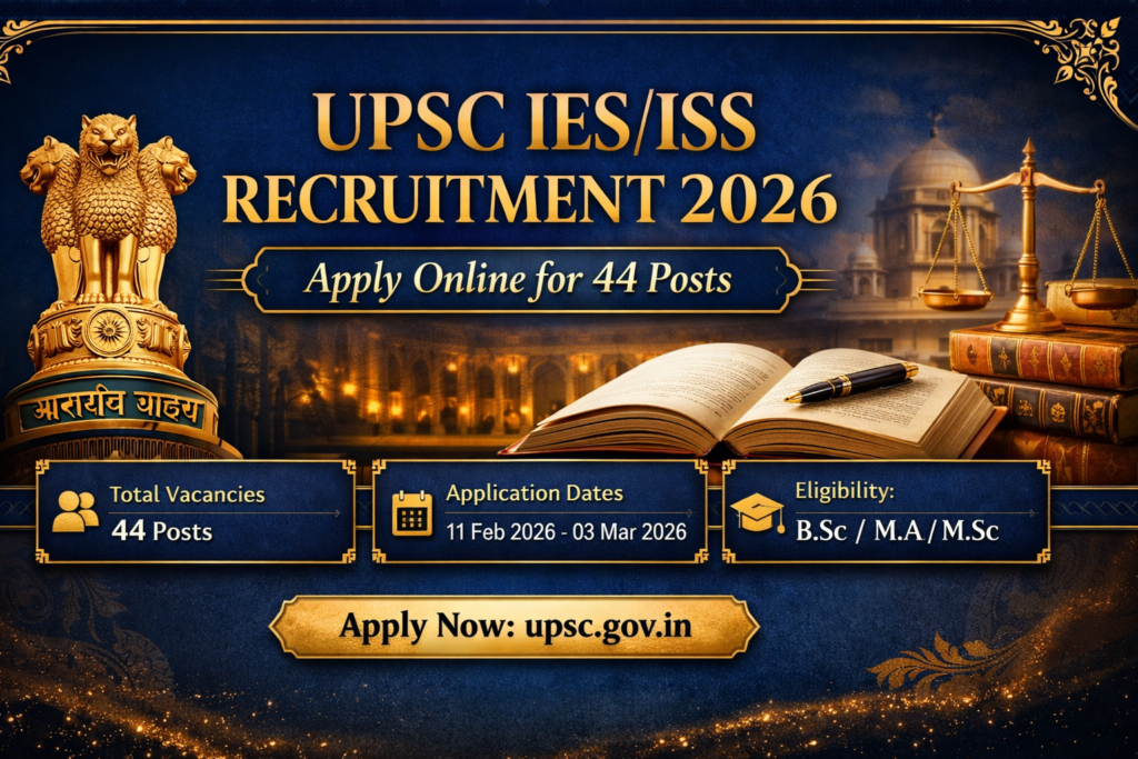 The Union Public Service Commission (UPSC) has officially released the UPSC IES/ISS Recruitment Notification 2026 for 44 prestigious posts under the Indian Economic Service (IES) and Indian Statistical Service (ISS). If you have completed your graduation or post-graduation in Economics or Statistics, this is a golden opportunity to step into one of India’s most respected government services.